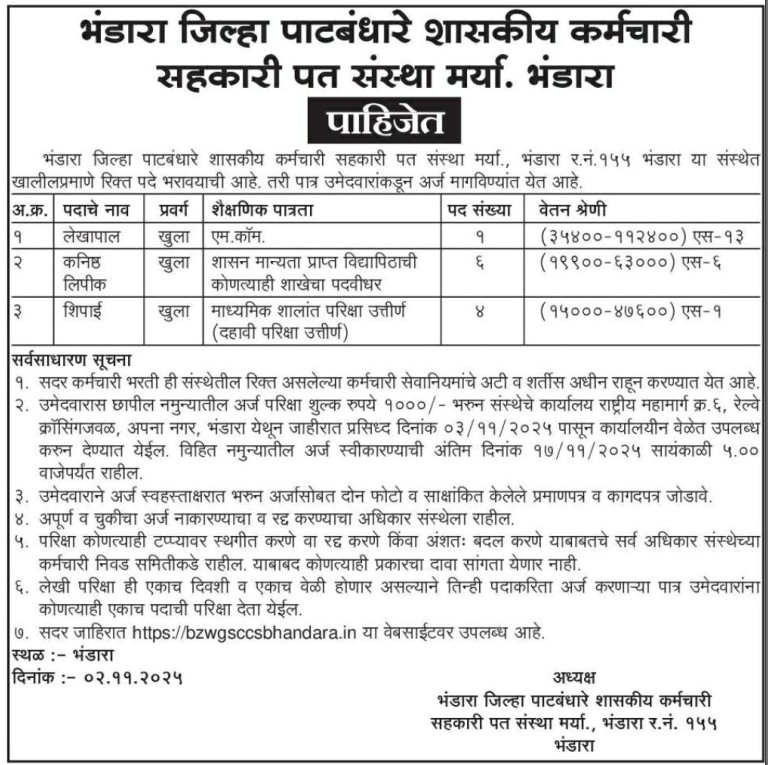लेखापाल खुला पदाकरिता प्राप्त अर्जांपैकी पात्र उमेदवाराची यादी